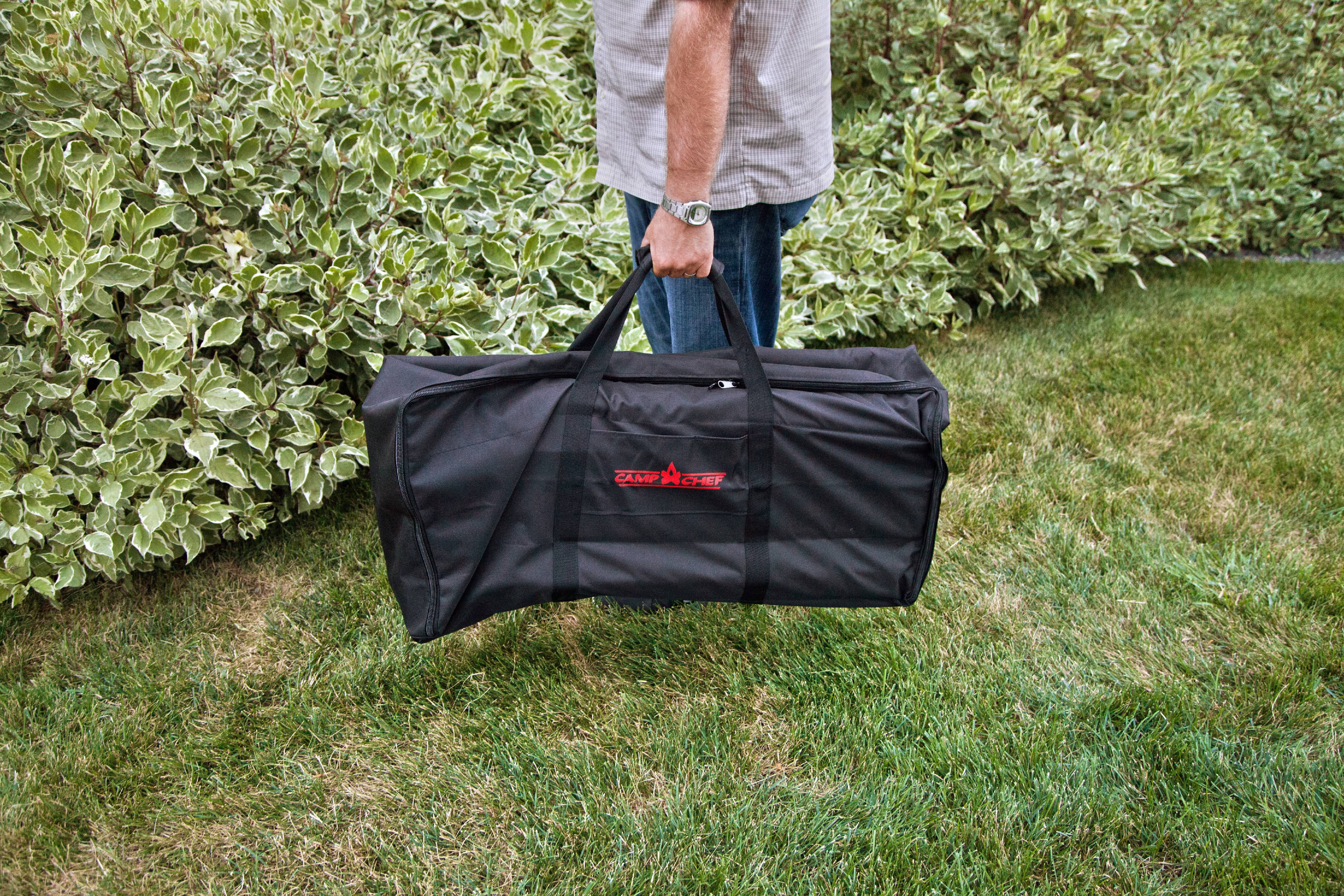 Camp chef professional kitchen fry griddle cooking steel 14x32 carry handle sg60. This wheeled stove bag is designed to be durable and protect the stove as it is moved, so you don't have to worry. Camp chef 3 burner carry bag is rated 4.1 out of 5 by 23. Camp chef price $ 55.95. Rated 5 out of 5 by rick alc from 3 burner grill bag had to order this online due to everyone is sold out. Camp chef griddle carry bag. Camp chef expedition 3 burner stove. Fits my big gas grill perfect. Rated 2 out of 5 by mike the camper from don't pull on the zipper pulls i think they may have gotten a bad batch of zippers, i own carry bags for 3 camp chef products and all of them have zipper issues. Camp chef pioneer two burner stove. From campchef.com the 3 burner stoves handle all that weight just fine and with the 30k btu burners, they steam the tamales in 4 hours easily on low flame once the water is boiling. Durable carry bag for simple storage and transport of your triple burner stove. Doubles as an excellent gear.